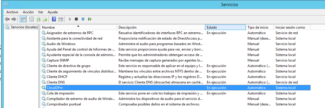 - 3.- Instale y configure el servicio Cloud2Prn. Para saber cómo hacer esto lea la siguiente pregunta frecuente: :¿Cómo se instala y configura el servicio de impresión Cloud2Prn?