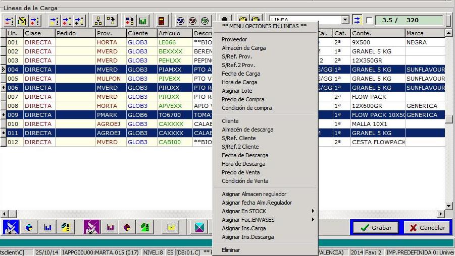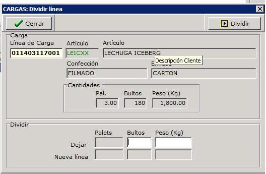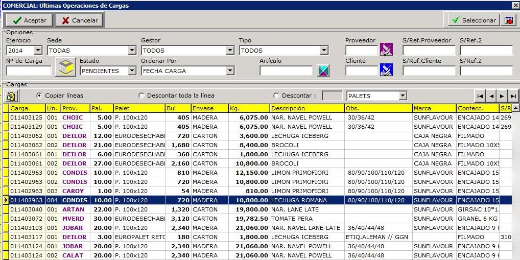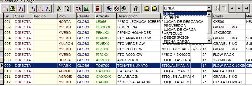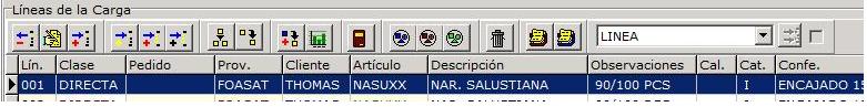 Una carga puede tener varias líneas para gestionar las líneas se disponen de los botones situados en la zona líneas de la carga.