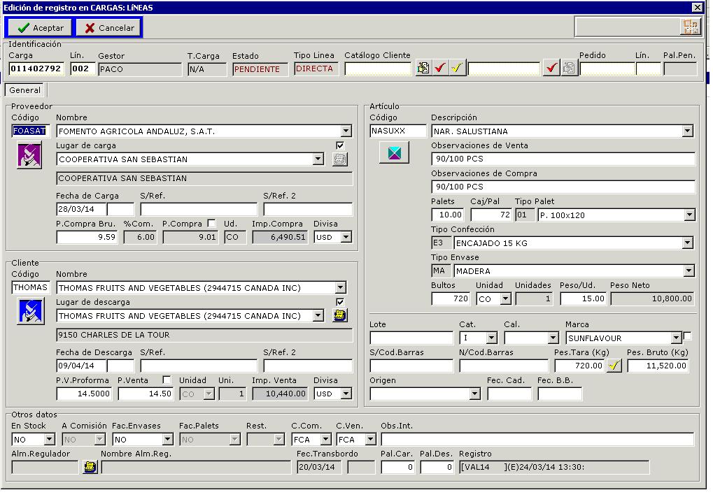 campo S/Ref. es importante, ya que debe estar rellenado cuando se FINALICE la carga.