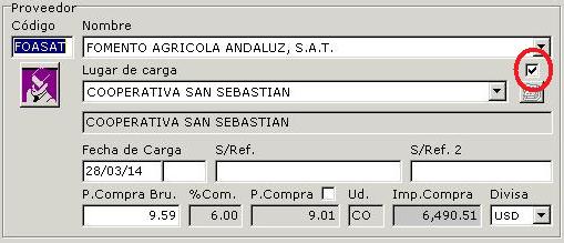 Se debe indicar el proveedor y el almacén de carga. Se puede usar un almacén de carga del propio proveedor o cualquier otro marcando la opción que se indica.