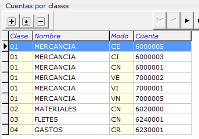 Se puede definir para cada modo del documento MODO (VN/VI/Etc) y la clase que se indica en la línea del documento MERCANCIA/FLETES/GASTOS/Etc una cuenta predeterminada, esto se hace en Administración/Auxiliares/Empresas/Cuentas/Cuentas por clases.