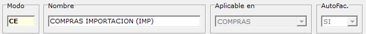 Ciertos modos contables como el CI (Compra Intracomunitaria) requieren de una autoliquidación de IVA (Autofactura), se debe indicar en Administración/Auxiliares/Impuestos/Modos.