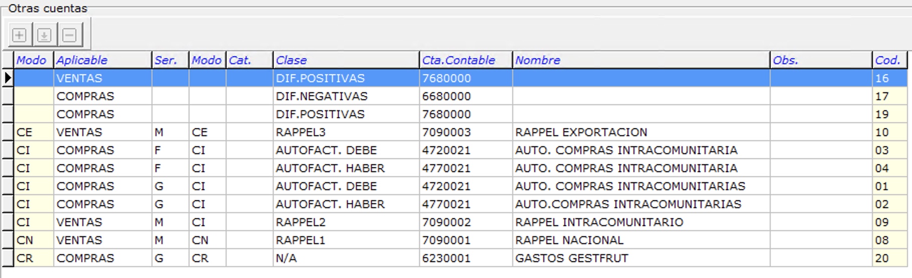 En este caso será necesario además configurar las cuentas de enlace contable en Administración/auxiliares/empresas/cuentas/Otras cuentas.