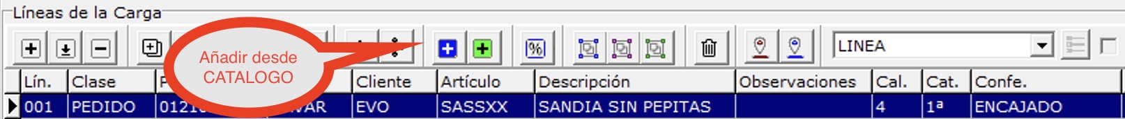 Al hacer la carga se podrá usar el botón, añadir desde catálago que se muestra a continuación: