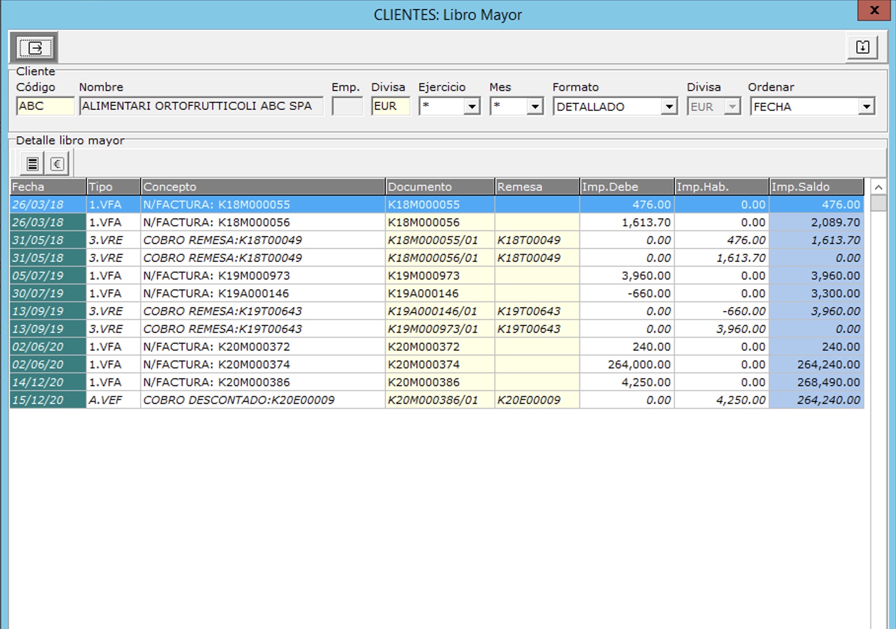 Se ha desarrollado una nueva consulta para ver el libro mayor de un cliente o proveedor directamente desde su ficha.