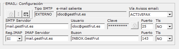 Si se configura un Servidor INTERNO el sistema usará como servidor de salida mail.gestfrut.es, sobre este servidor se utilizará la cuenta de salida tx@gestfrut.es y sobre esa cuenta se solapará la cuenta que el usuario introduzca en el campo e-mail saliente: usuario@empresa.com.
