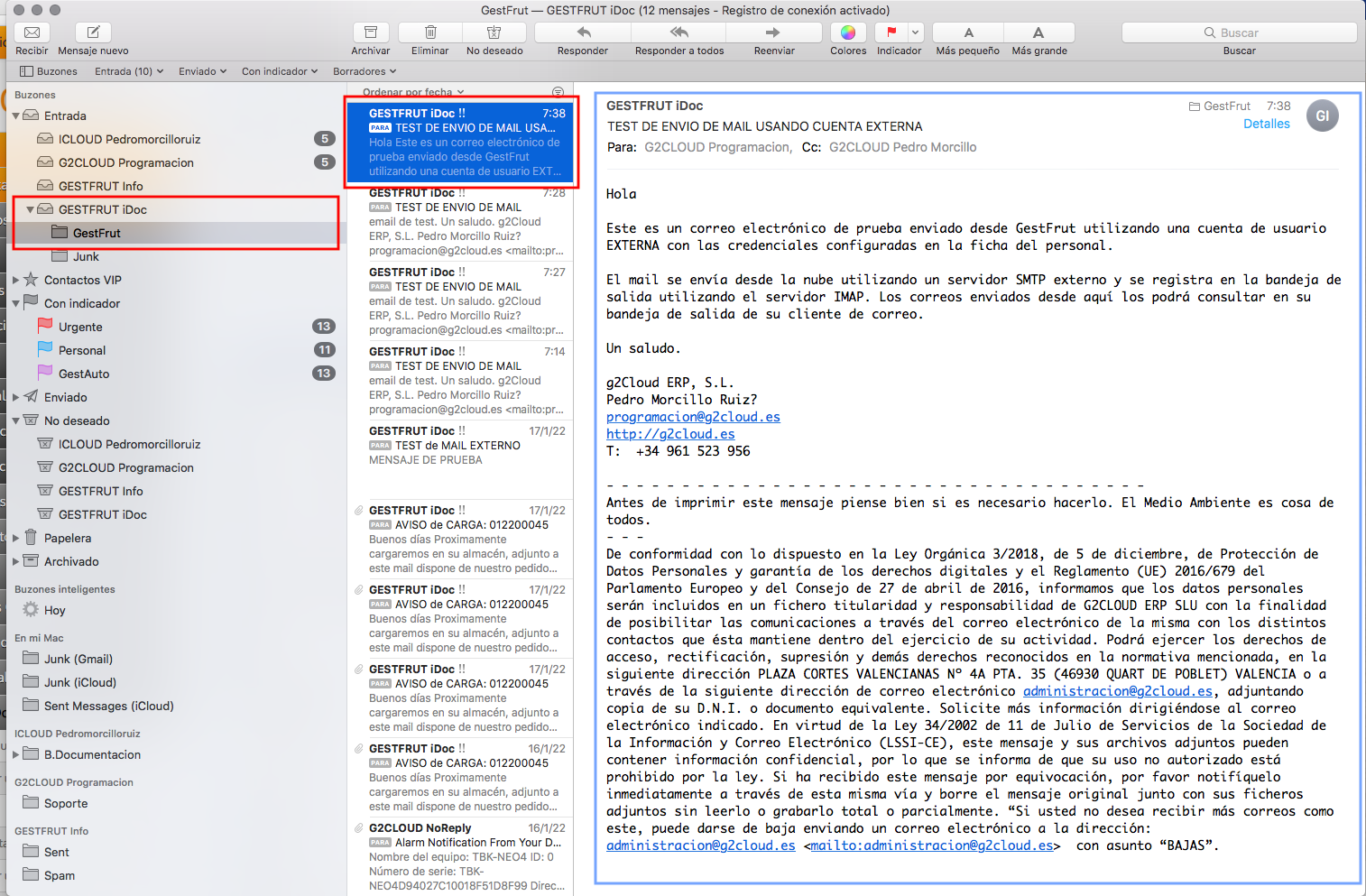 Al configurar la cuenta como externa se recomienda activar el registro IMAP, de esta forma los correos enviados desde GestFrut podran ser vistos directamente vistos en su cliente de correo. es posible configurarr un buzon separado para los correos que se han enviado desde GestFrut.