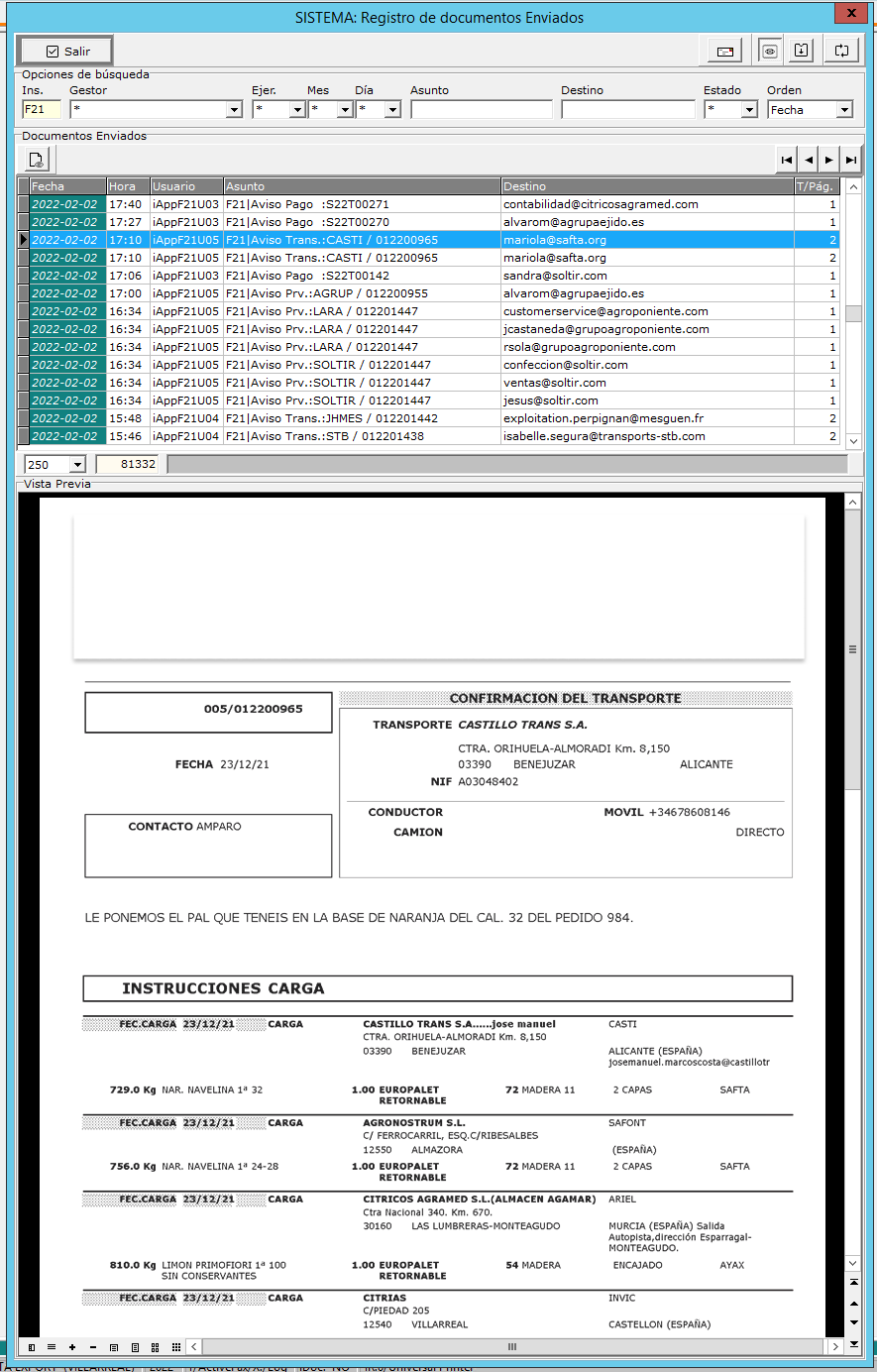 El registro de correos enviados estará en la nube y podrá ser Agencia/Consultas/Documentos Enviados.