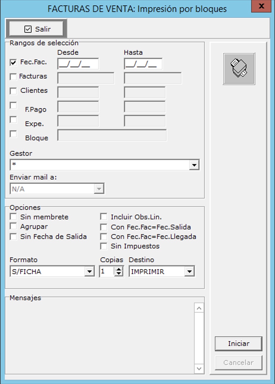 Podemos filtrar por las opciones que se indican, por ejemplo en las facturas de venta se muestra esta pantalla: