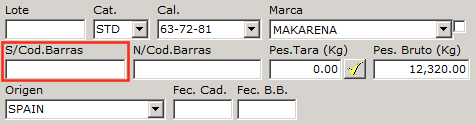 3.1.- En la carga/expedición: Rellenado el campo S/COD.BARRAS.