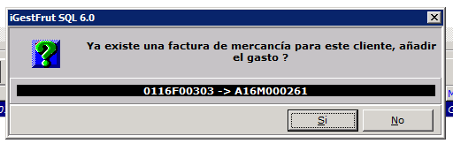 Si responde SI se añadirá el gasto a la factura de venta en la serie M, si responde NO se creará una factura de venta en la serie F sólo para ese gasto.