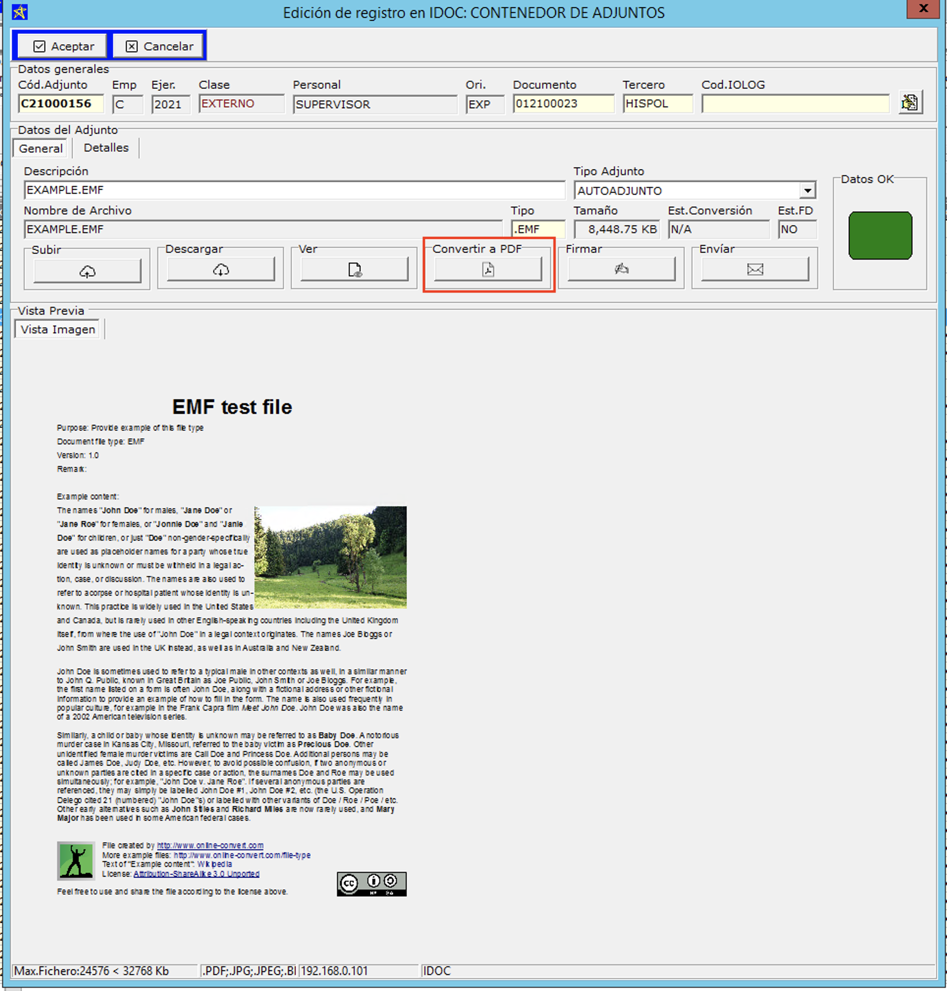 - Los documentos externos, una vez convertidos a PDF no exceden de 500 kb.