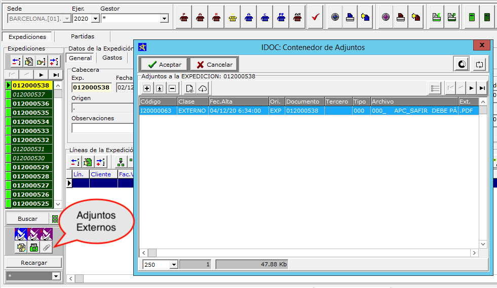 RECUERDE: Por cada 1000 expediciones necesitará 1 Gbyte para almacenar toda la documentación asociada.