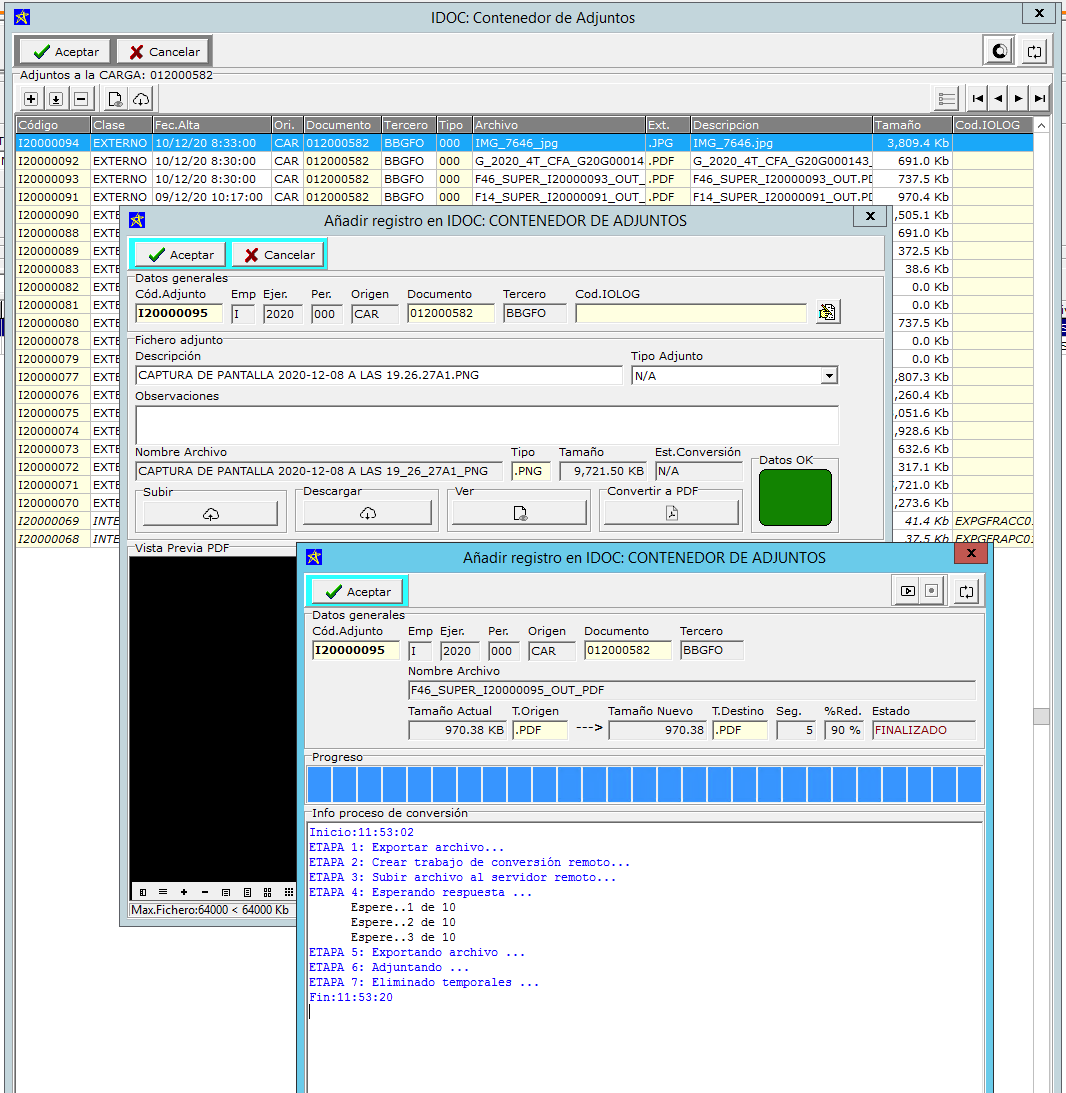 Para optimizar el espacio en el contenedor iDoc se recomienda usar exclusivamente el formato .PDF, pero es posible configurar el servicio para que acepte otros formatos que necesite: .DOC, .XLS, .PNG, etc.