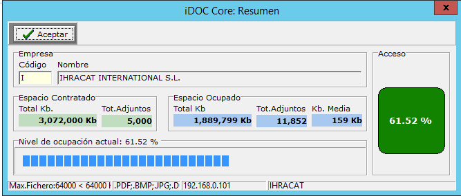 - Máximo 64 Gbytes de capacidad en el contenedor iDoc ( Equivale a 64000 Expediciones).