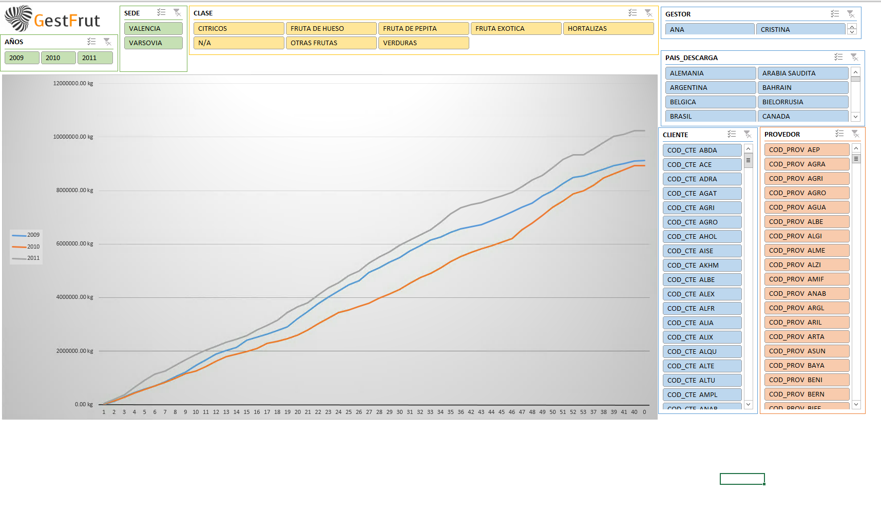 El servicio iView para iGestFrut es una herramienta que permite analizar los resultados de la aplicación de una forma más gráfica e interactiva que con los informes de resultados generados por la aplicación. El servicio iView utiliza una herramienta de fácil acceso y bajo coste como Microsoft EXCEL para presentar la información de forma más interactiva.