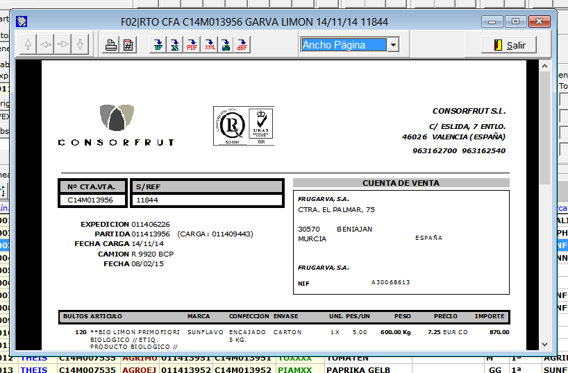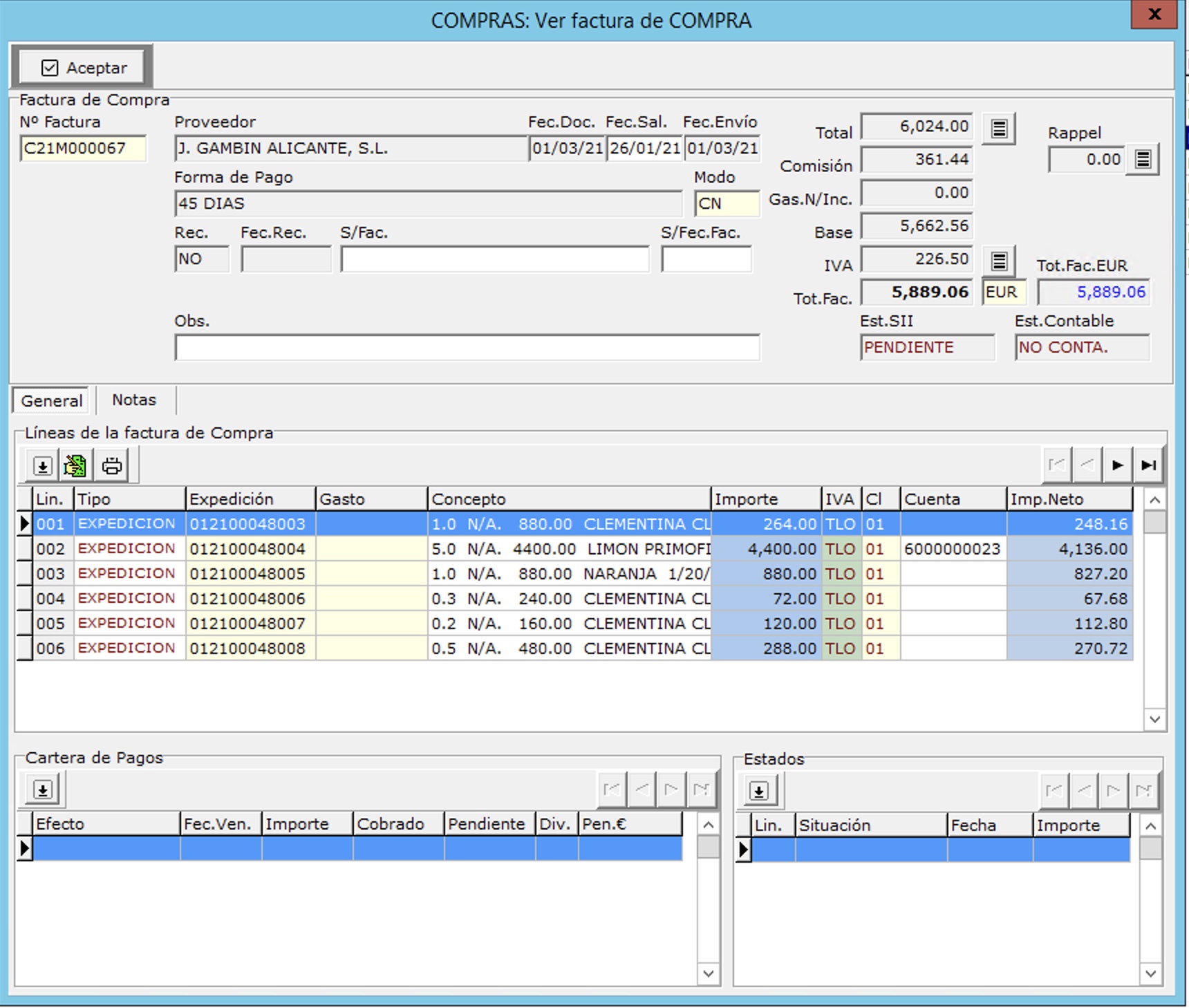 Con la opción Ir a se accede directamente a la factura en la parte de Administración/Facturas de Compra / Mantenimiento, es equivalente al botón que se mostró anteriormente.