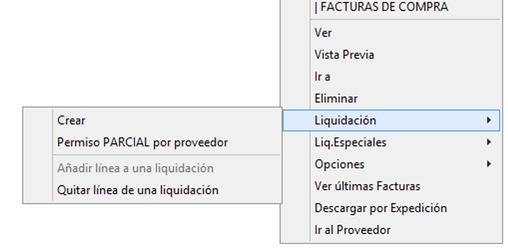 Menú de Liquidación