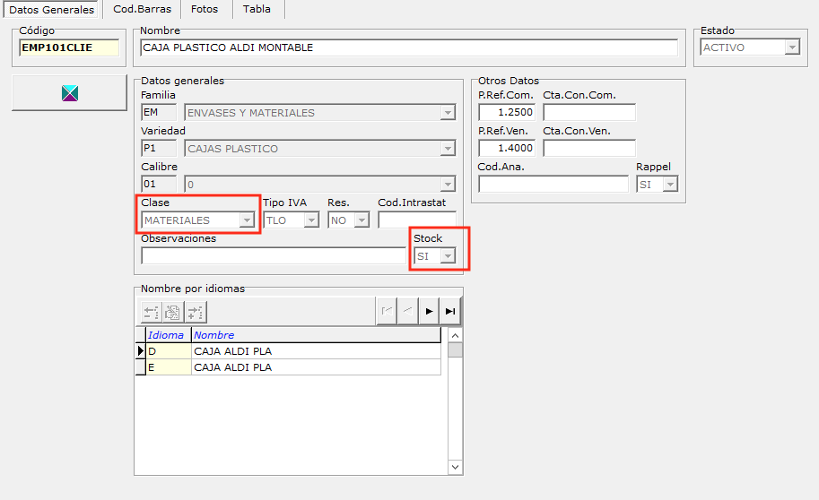 El primer paso es registrar los materiales como un artículo y marcarlo con STOCK:SI y CLASE: MATERIALES.