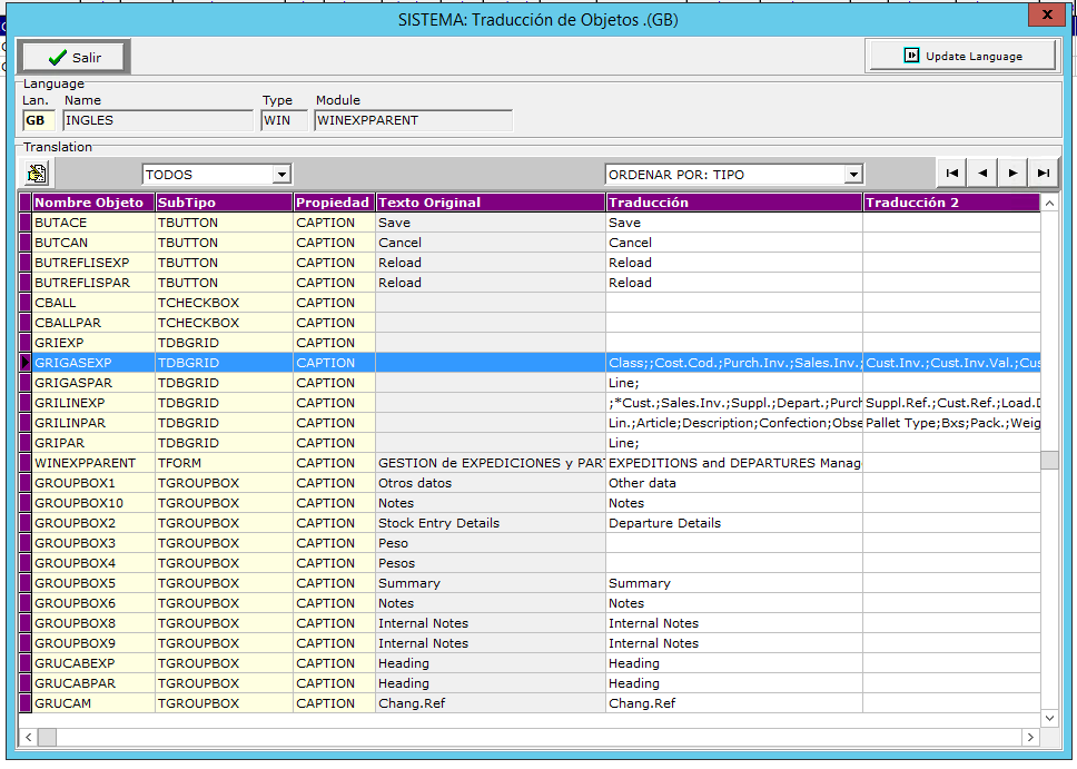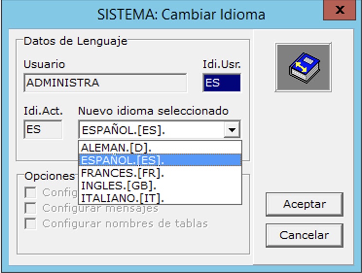 La aplicación dispone de una herramienta interna que permite realizar la traducción de las pantallas que se muestran al usuario. Actualmente se dispone de una traducción completa al Ingles, Alemán e Italiano. Es posible además indicar el lenguaje de la interfaz predeterminado para que cada usuario al entrar vea las pantallas en su idioma preferido.