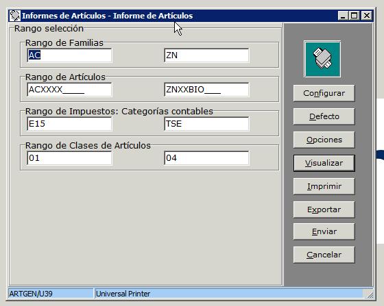 En la pantalla se pueden seleccionar en la parte inferior izquierda el formato del documento y las opciones disponibles. Para personalizar por usuario estas opciones sitúe el ratón en la barra superior y pulse el botón derecho, marque la opción Activar/Desactivar . A continuación marque las opciones y seleccione el formato. Finalmente, en el menú anterior use la opción Salvar configuración.