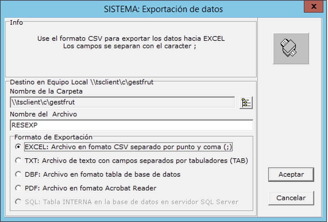 Creará un fichero con extension .DBF en tu carpeta local c:\gestfrut
