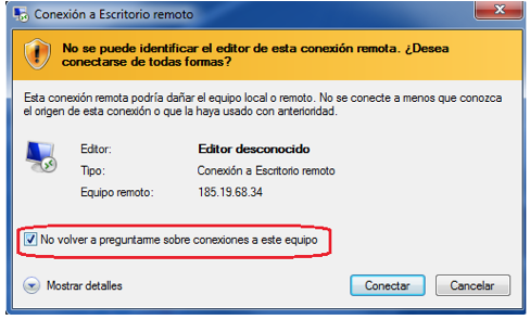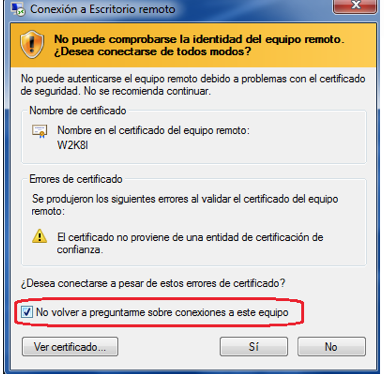 Si es la primera vez que se conecta en ese equipo, o si se produce una actualización, se le podrían mostrar las pantallas que se muestran a continuación, haga click en las opciones que se indican para que el sistema recuerde la configuración y no vuelva a preguntar.