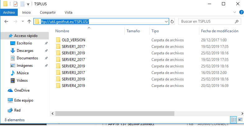 Al abrir el sitio FTP podrá acceder a varias carpetas, en la carpeta TSPLUS encontrará varias subcarpetas, una por cada servidor disponible. Es posible que haya carpetas en función del año de la versión, siempre se recomienda descargar la más reciente.