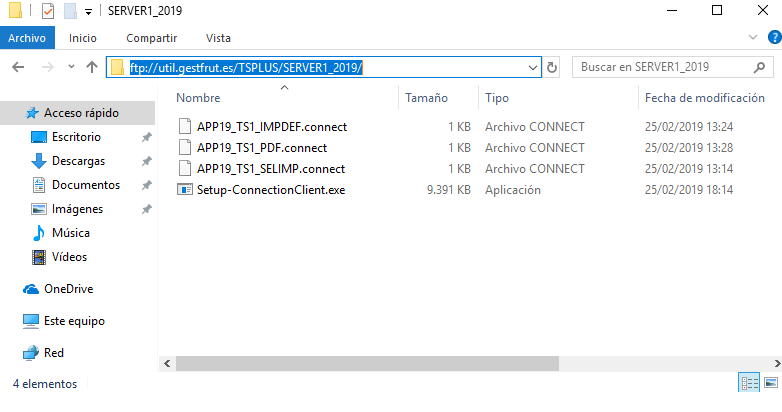 1.- Conecte con el área ftp://util.gestfrut.es y descargue el archivo SETUP-CONNECTIONCLIENT.EXE que encontrará en la carpeta FTP correspondiente a su servidor. Descargue también el archivo .connect que prefiera según sus necesidades de impresión. Se recomienda dejar el archivo .connect en su escritorio.
