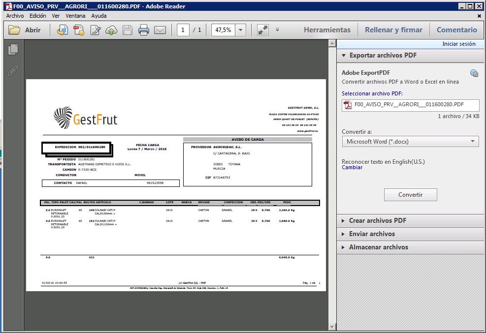 Según el cliente con el que se conecte, el documento se mostrará en PDF , se imprimirá por la impresora predeterminada o se permitirá seleccionar una de las impresoras instaladas en el equipo local.