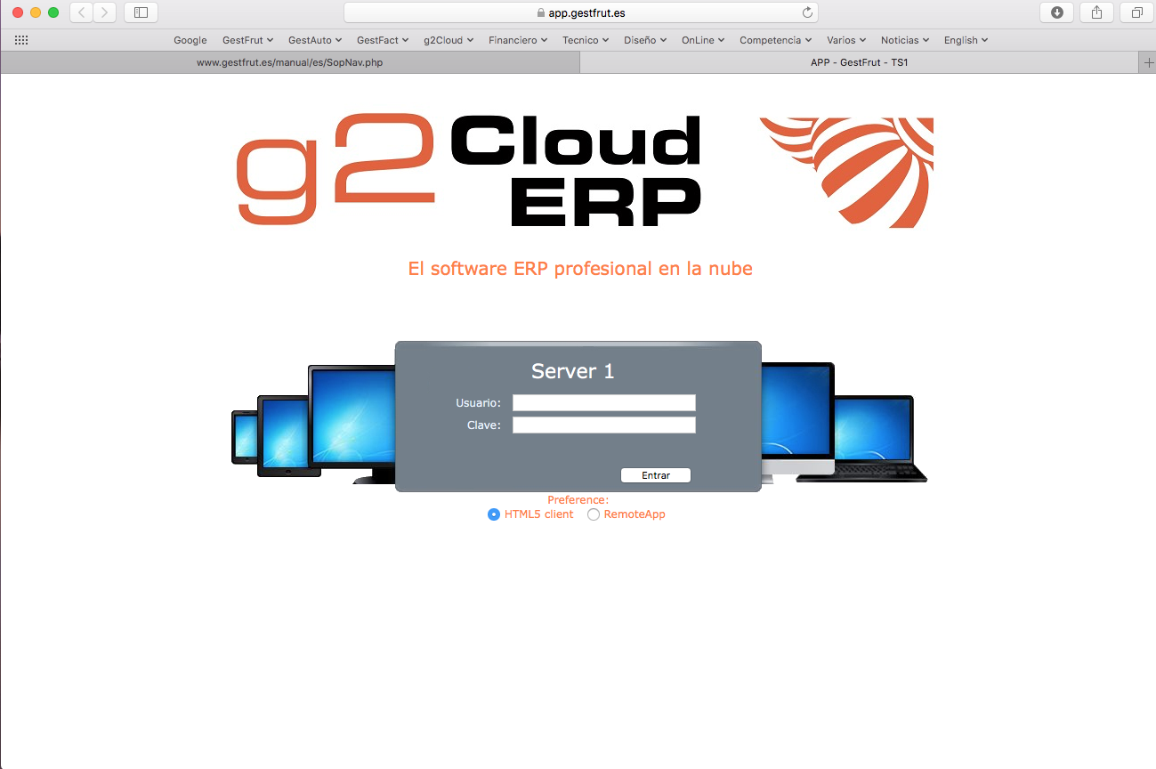 Para ello, debes teclear en la barra de direcciones del navegador la dirección de uno de los servidores Gestfrut. Contacte con formacion@gestfrut.es si no conoce cual es su servidor asignado.